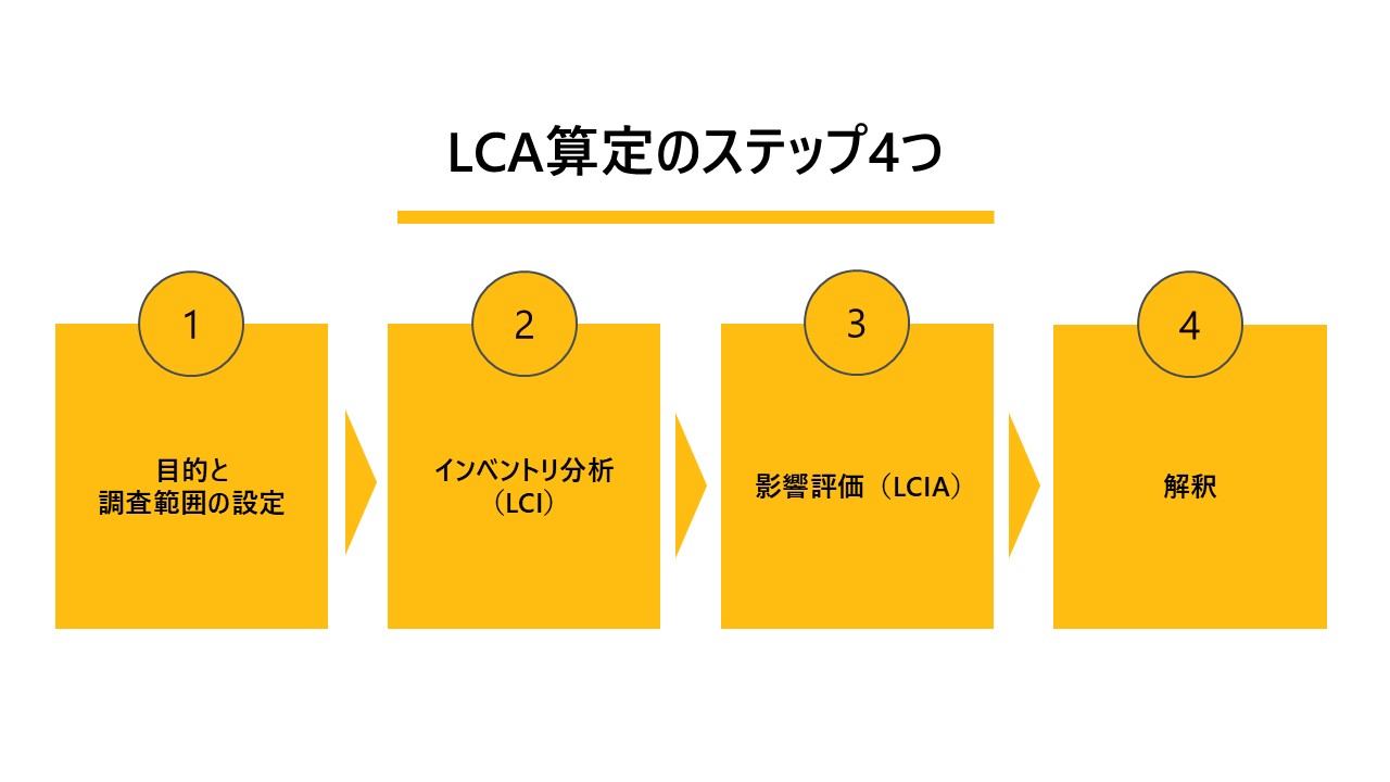 LCA算定は、国際規格であるISO14040およびISO14044に基づき、大きく4つのステップで進められます。ここでは、各ステップで具体的に何を行うのかを順に解説します。