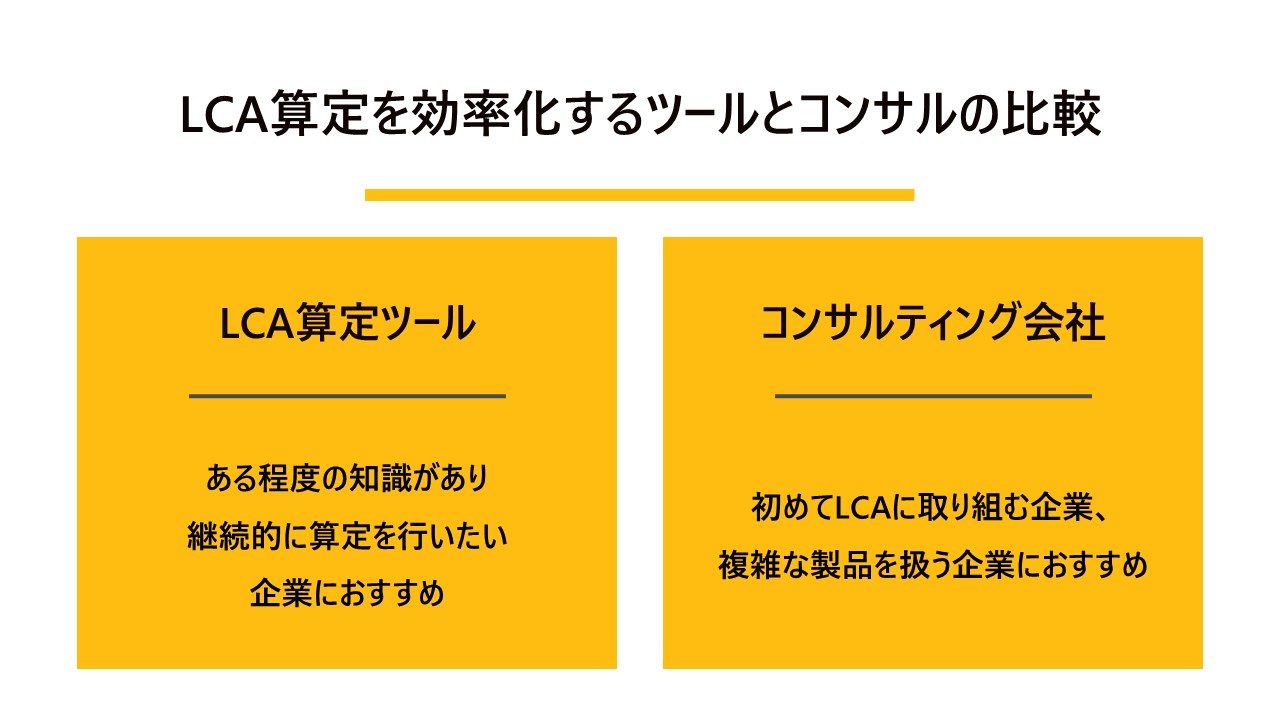 LCA算定は専門的な知識と多くの工数を要するため、専用のツールや外部のコンサルティング会社を活用するのが効率的です。ここでは、ツールとコンサルの選び方について解説します。