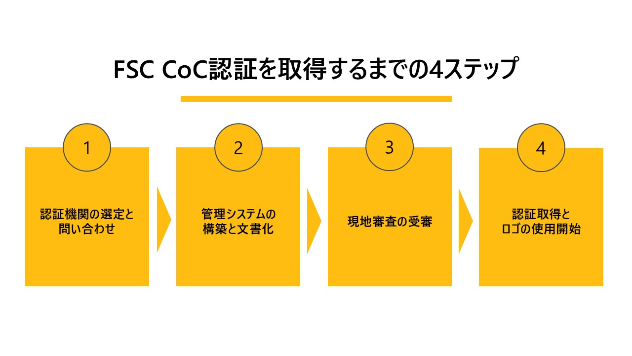 FSC® CoC認証の取得までの一般的な流れを4つのステップで解説します。