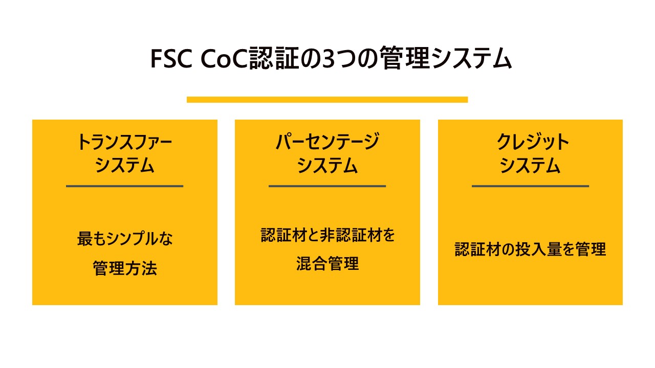 FSC® CoC認証では、企業の業態に応じて、主に3つの管理システムが用意されています。自社の製造・流通過程に最も適したシステムを選択することが重要です。